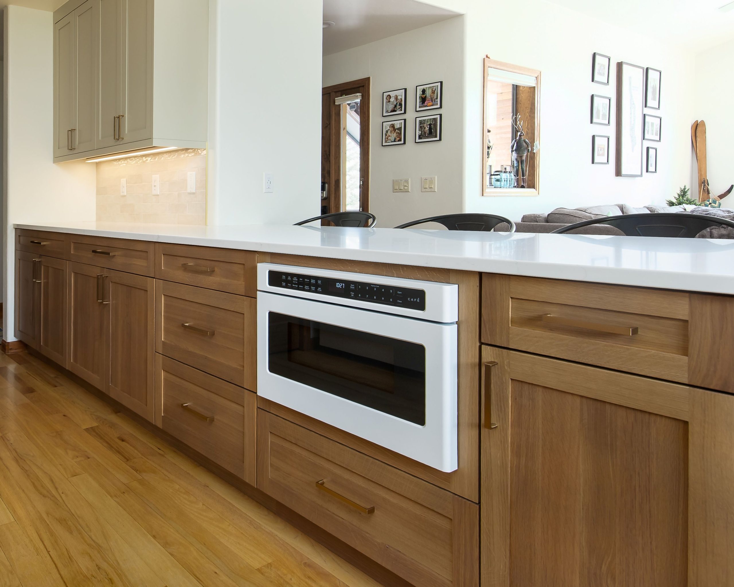 As a milestone birthday gift, this kitchen remodel was designed to bring lasting beauty, comfort, and function to a family’s full-time home in Silverthorne, Colorado. With kids, work, and everyday life centered here, the homeowners wanted a space that felt warm, timeless, and practical. Thoughtful space planning and Bespoke White Oak cabinetry brought new life to the kitchen—creating a welcoming hub for cooking, gathering, and making memories for years to come.